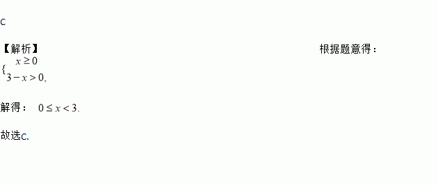 A. x<3 B. x≤3 C. 0≤x<3 D. x≥0