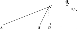 分析:过C作AB的垂线,交直线AB于点D,分别在Rt△ACD与Rt△BCD中用式子表示CD,从而求得BD的值,即离小岛C最近的距离.