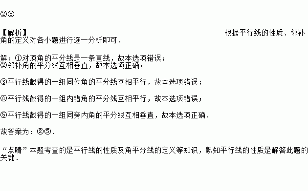 ①对顶角的平分线; ②邻补角的平分线;