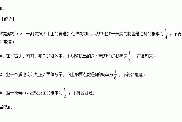 B.在“石头、剪刀、布”的游戏中,小明随机出的是“剪刀”