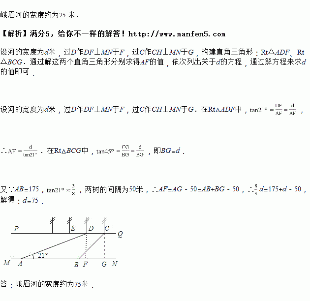 峨眉河是峨眉的一个风景点.如图,河的两岸平行于![]()