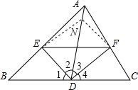 ∵DE、DF分别为△ADB、△ADC的角平分线,