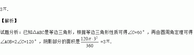 如图,△ABC是⊙O的内接正三角形,⊙O的半径为3,则图中阴影部分的面积是 .