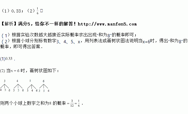 ”频率将稳定在它的概率附近.估计出现“和为![]()