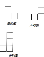 主视图有2列,每列小正方形数目分别为3,1;左视图有3列,每列小正方形数目分别为3,1,1;俯视图有2列,每列小正方形数目分别为1,3.