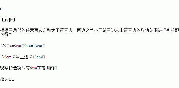 若三角形的两边长分别为4厘米和9厘米,则此三角形的第三边的长可能是( )