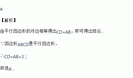 如图,在平行四边形ABCD中,AB=3,AD=2,则CD=( )