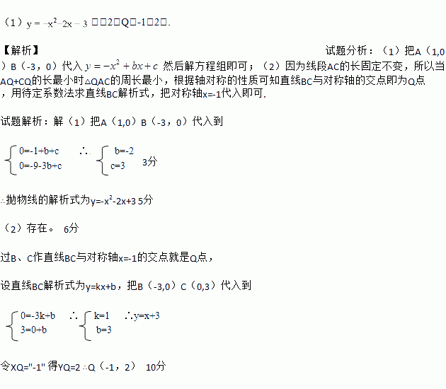(2)设(1)中的抛物线交y轴与C点,在该抛物线的对称轴上是否存在点Q,使得△QAC的周长最小?若存在,求出Q点的坐标;若不存在,请说明理由.