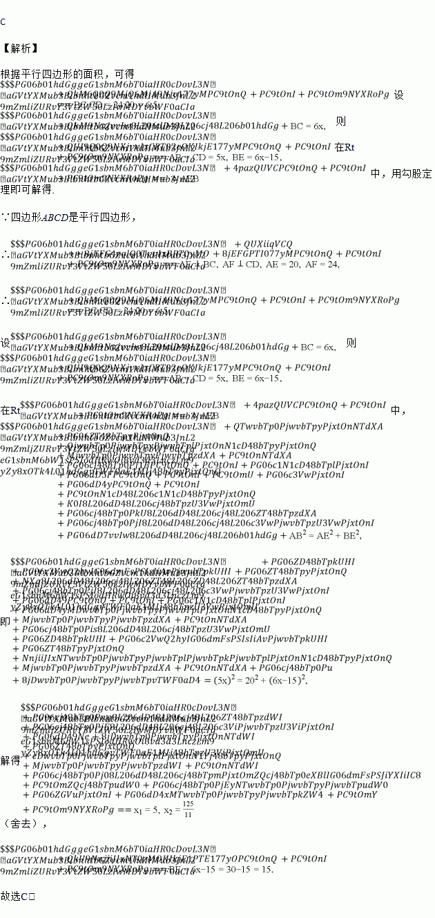 如图,在?ABCD中,AE⊥BC于点E,AF⊥CD于点F,若AE=20,CE=15,CF=7,AF=24,则BE的长为( )