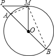 分析:可连接AM、BM,根据切线性质可知∠PMA=∠PBM,所以可知△PAM∽△PMB,PA•PB=PM2,再根据边即可确定PA:PB的值.