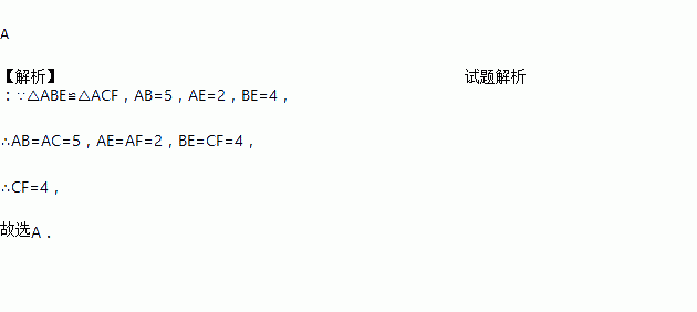 如图,△ABE≌△ACF.若AB=5,AE=2,BE=4,则CF的长度是( )