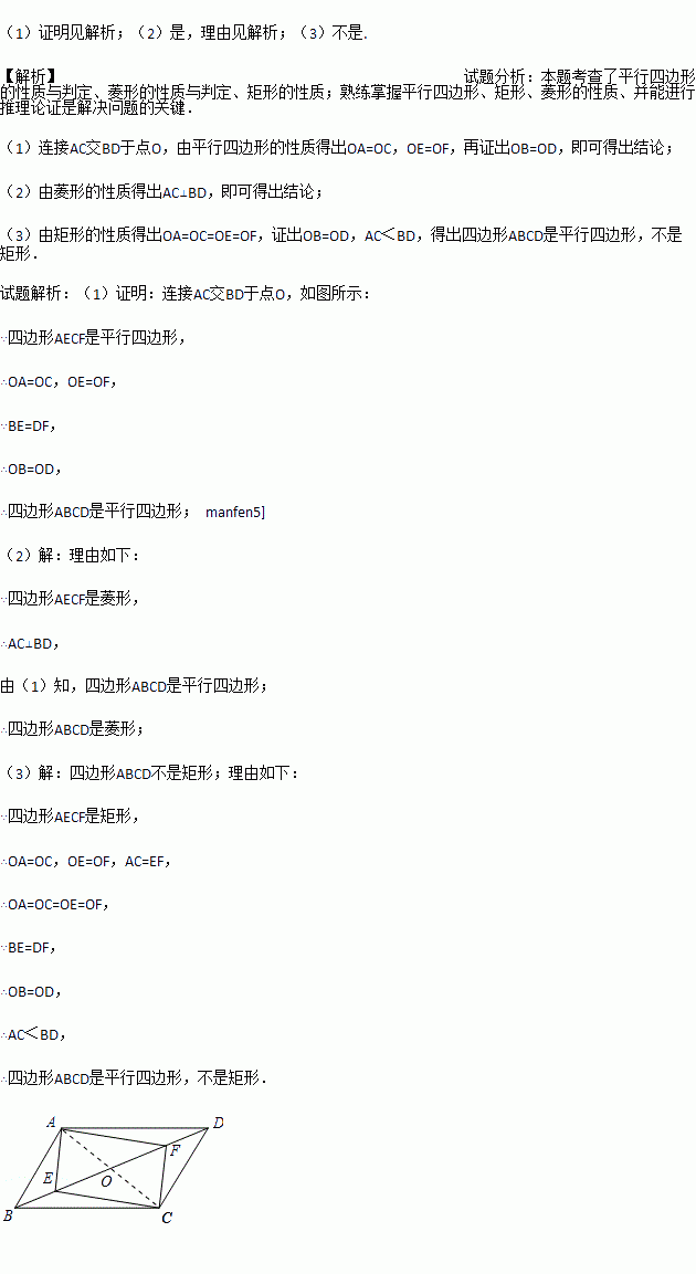 (3)若四边形AECF是矩形,试判断四边形ABCD是否为矩形,不必写理由.