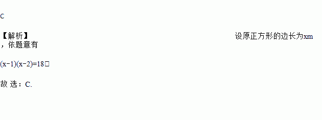 C 【解析】设原正方形的边长为xm,依题意有 (x?1)(x?2)=18, 故 选:C.