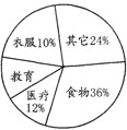 总支出×教育上的支出所占的百分比=用于教育上的支出,用于教育上的支出所占百分比是:1-10%-24%-12%-36%,代入计算即可.