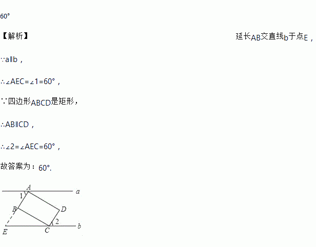 如图,矩形ABCD的顶点A、C分别在直线a、b上,且a∥b,∠1=60°,则∠2的度数为_____.