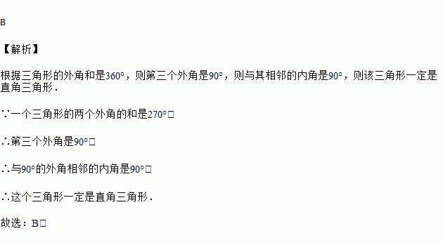 如果一个三角形的两个外角的和是270°,那么这个三角形一定是 ( )