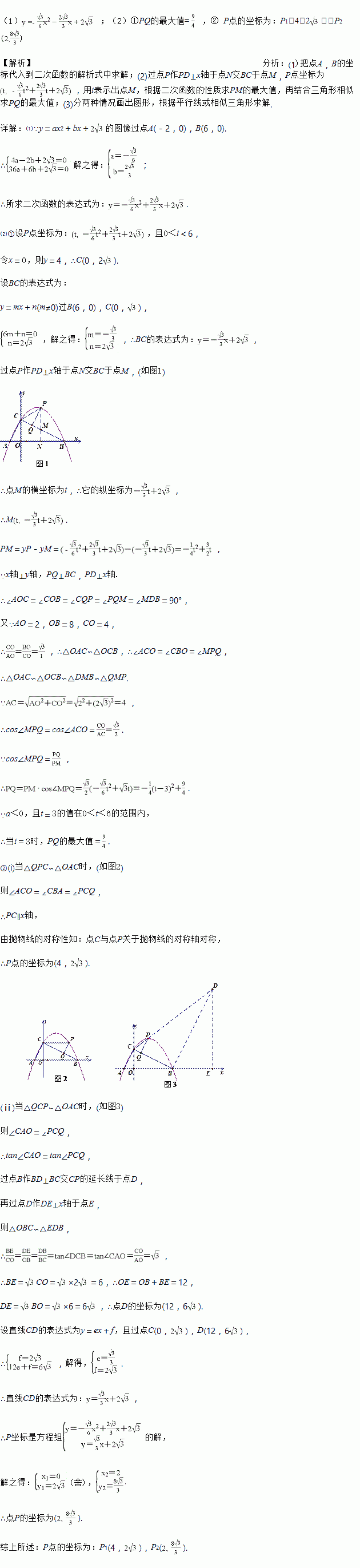 ② 若以点P、C、Q为顶点的三角形与△ACO相似,求P点的坐标.