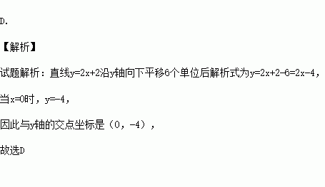 直线y=2x+2沿y轴向下平移6个单位后与y轴的交点坐标是( )