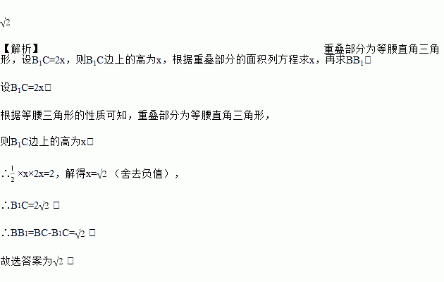 如图,将等腰直角△ABC沿BC方向平移得到△A1B1C1,若BC=3,S△PB1C=2,试求BB1的值.