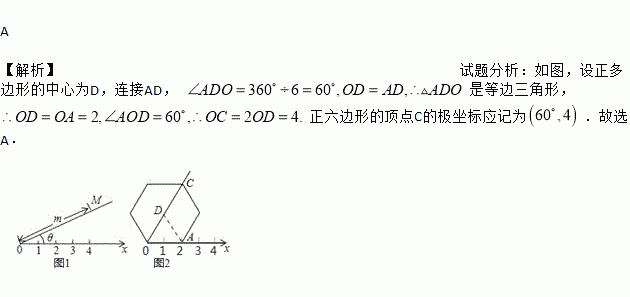 应用:在图2的极坐标系下,如果正六边形的边长为2,有一边OA在射线Ox上,则正六边形的顶点C的极坐标应记为( )
