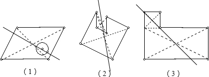 观察以上图形,用所得到的结论或启示对下面每个图形作一条直线将其阴影部分的面积平分.(不写画法,不证明,保留作图痕迹)