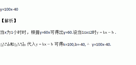 一辆汽车在行驶过程中,路程y (千米)与时间x (小时)之间的函数关系如图6所示.当0≤x≤1时,y关于x的函数关系式为y=60x,那么当1≤x≤2时,y关于x的函数关系式为 .