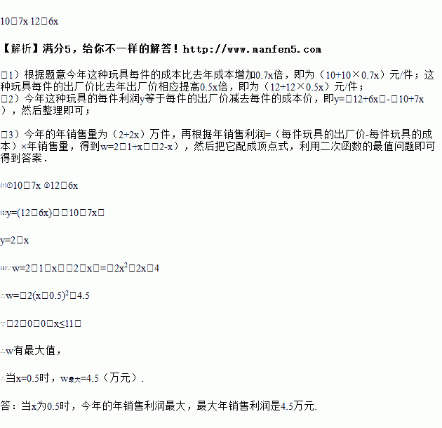 倍,今年这种玩具每件的出厂价比去年出厂价相应提高![]()
