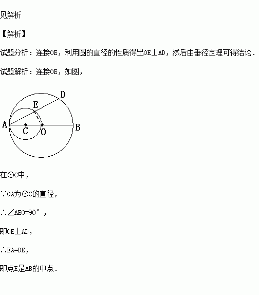 如图所示,AB是圆O的直径,以OA为直径的圆C与圆O的弦AD相交于点E.