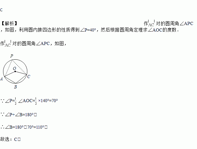 如图,点A、B、C都在⊙O上,若∠AOC=140°,则∠B的度数是( )