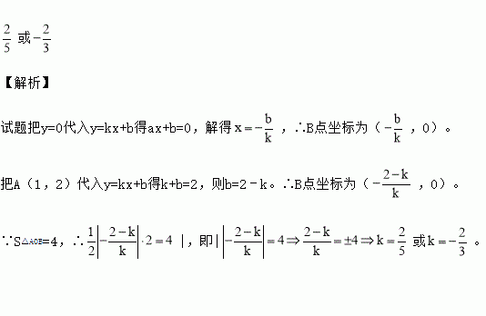 在平面直角坐标系中,点O是坐标原点,过点A(1,2)的直线y=kx+b与x轴交于点B,且S△AOB=4,则k的值是 .