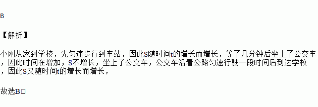 小刚从家去学校,先匀速步行到车站,等了几分钟后坐上了公交车,公交车匀速行驶一段时后到达学校,小刚从家到学校行驶路程s(单位:m)与时间r(单位:min)之间函数关系的大致图象是( )