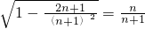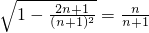 分析:由观察得到,根号内是一个1减去一个分数,这个分数的分子是奇数,为项数的2倍减1,分母是数的平方,且是项数加1后的平方.等号右边的结果也是分数,且分子是与项数相同,分母是项数加1.