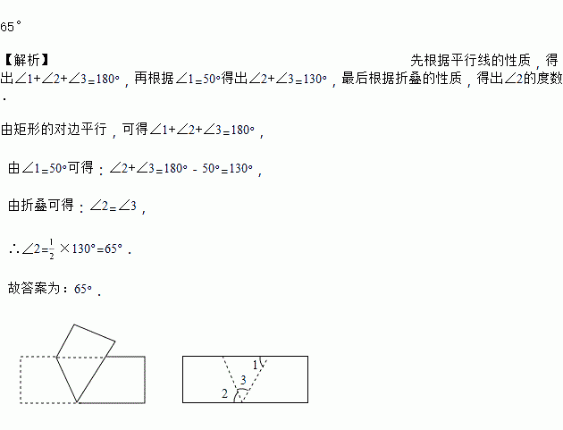 将一长方形纸片如图所示的方式折叠后,再展开,若,则 ______ .