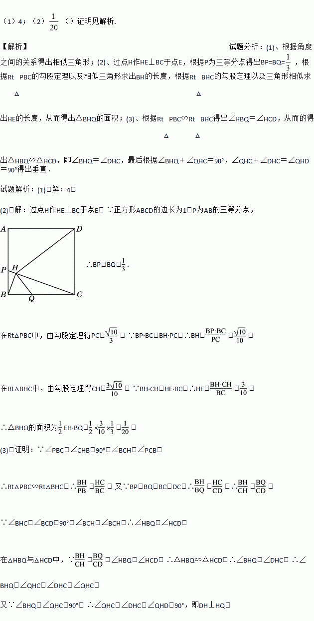 (2)若正方形ABCD的边长为1,P为AB的三等分点,求△BHQ的面积;