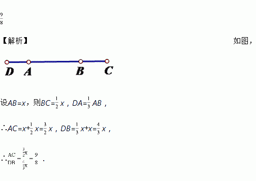 (3分)已知线段AB,在AB的延长线上取一点C,使AC=3BC,在AB的反向延长线上取一点D,使DA=AB,那么线段AC是线段DB的_____倍.