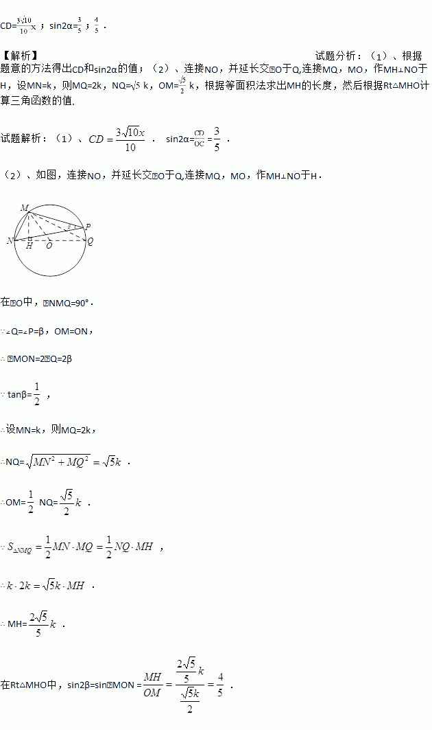 已知,如图2,点M、N、P为圆O上的三点,且∠P=β,tanβ =
