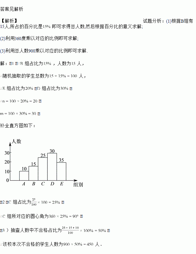 个定为不合格,请你估计该校本次听写比赛不合格的学生人数.![]()