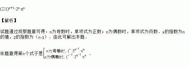 观察下面的一列单项式:2x,-4x2,8x3,-16x4,…根据你发现的规律,第n个单项式为__________.