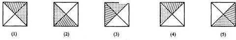 解答:观察发现,(1)(2)(3)(5)中带点的阴影部分在带斜线的阴影部分的顺时针方向,