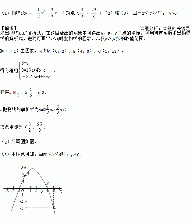 (3)利用抛物线y=ax2+b x+c,写出x为何值时,y>0.