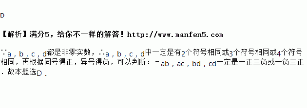 设a,b,c,d都是非零实数,则四个数:﹣ab,ac,bd,cd( )