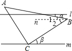 分析:过点B作直线n∥l,根据两直线平行,内错角相等可得∠1=∠α,∠2=∠β,再根据△ABC是等腰直角三角形求解即可.