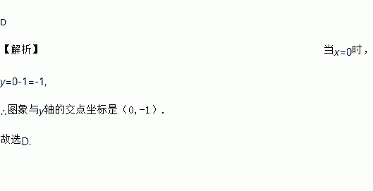 D 【解析】当x=0时, y=0-1=-1, ∴图象与y轴的交点坐标是(0,-1). 故选D.