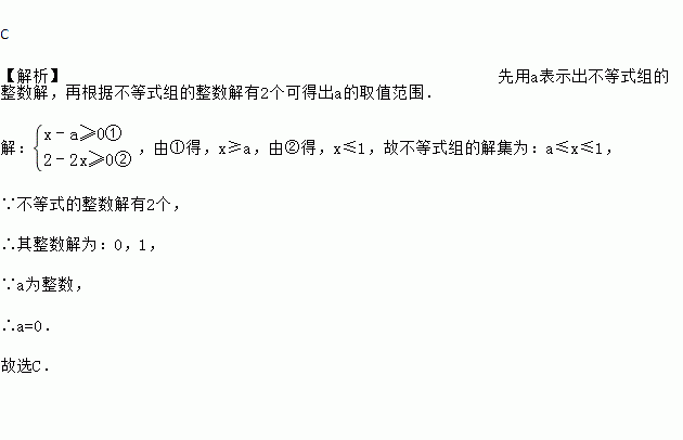 已知关于x的不等式组的整数解共有2个,则整数a的取值是( )