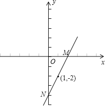直线l过点(1,-2),它与x轴的正半轴相交于点M,与y轴的负半轴相交于点N.如果M、N到原点的距离之和等于6.求直线l的解析式.
