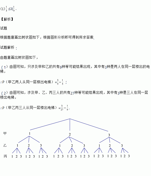 (1)求甲、乙两人从同一层楼出电梯的概率;