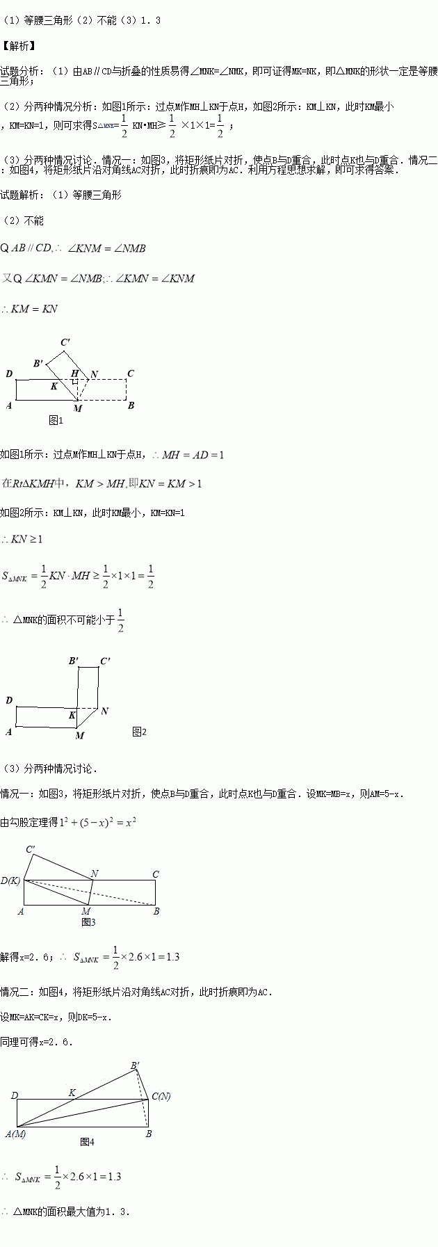 如图,已知一张长方形纸片ABCD,AB∥CD ,AD=BC=1,AB=CD=5.在长方形ABCD的边AB上取一点M,在CD上取一点N,将纸片沿MN折叠,使MB与DN交于点K,得到△MNK.