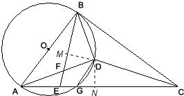 分析:由弦切角定理,易求得∠CBD=∠BAD,而∠CBD=∠EBD,即∠EBD=∠BAD;Rt△ABD中,易证得∠ABD=∠BFD;由于四边形AGDB内接于⊙O,则∠CGD=∠BFD=∠ABD;