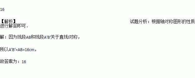 线段AB和线段A′B′关于直线l对称,若AB=16cm,则A′B′=__________cm.