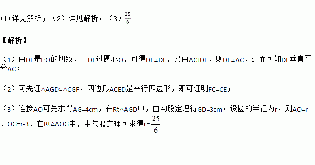 (3)若弦AD=5cm,AC=8cm,求⊙O的半径.